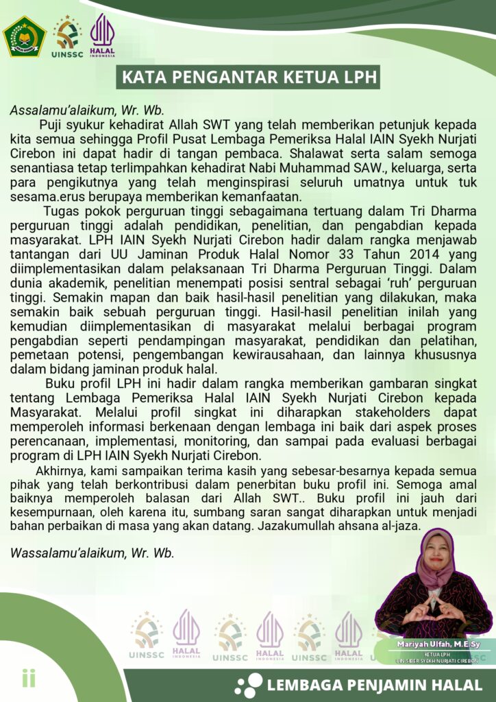 LPH UIN Siber Syekh Nurjati Cirebon lahir dalam rangka menjawab tantangan UU Nomor 33 Tahun 2014 tetang Jaminan Produk Halal. Lahirnya undang- undang ini dimaksudkan untuk mewujudkan kewajiban negara dalam memberikan perlindungan dan jaminan tentang kehalalan produk yang dikonsumsi dan digunakan oleh masyarakat, sehingga tercapai ketenangan bagi umat Islam dalam peribadatannya dan dalam menjalankan ajaran agamanya.